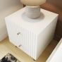 The THARO Bedside Table in white blends modern texture with a sleek finish. Featuring two spacious drawers and sturdy legs, this nightstand combines elegant style with practical storage.