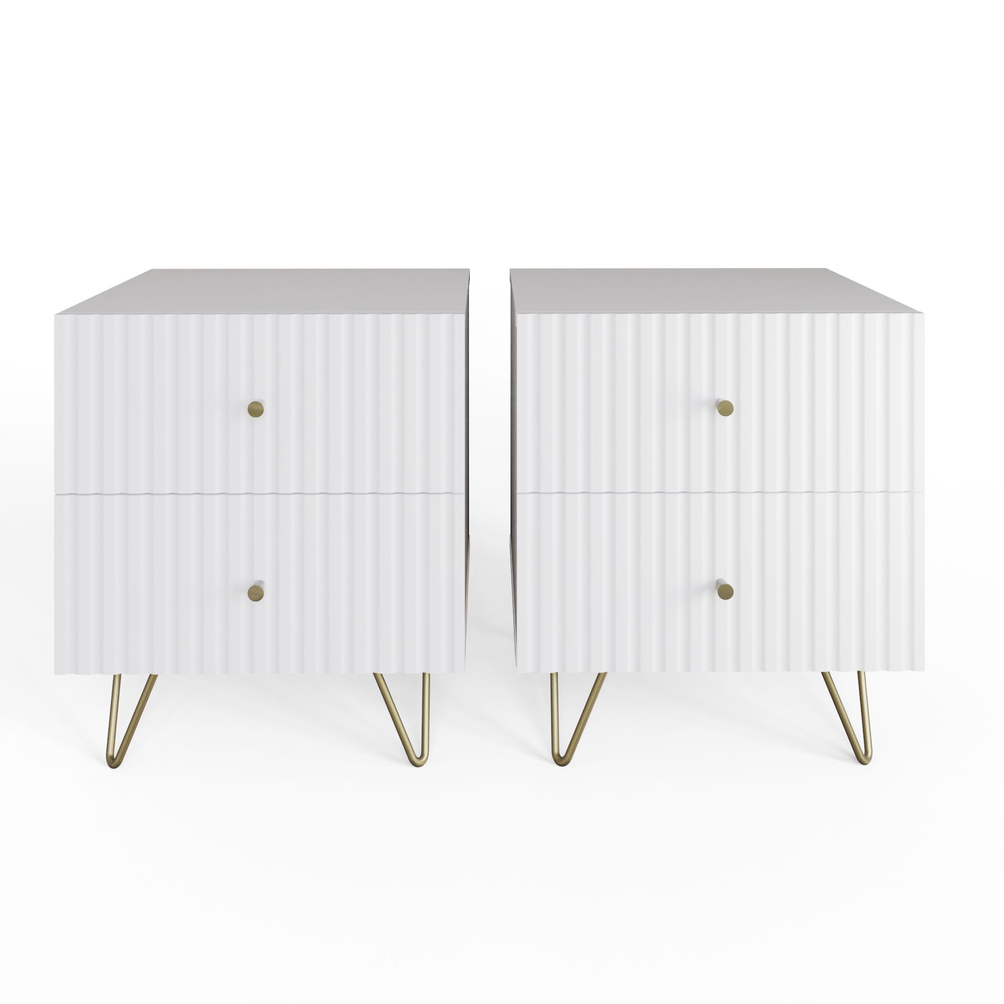 THARO Set of 2 Bedside Table with 2 Drawers Each - White