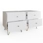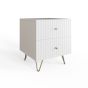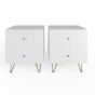 The THARO Bedside Table Pair in white features a modern textured design and a sleek finish. With two spacious drawers in each nightstand and sturdy legs, this stylish pair offers both elegance and practical storage