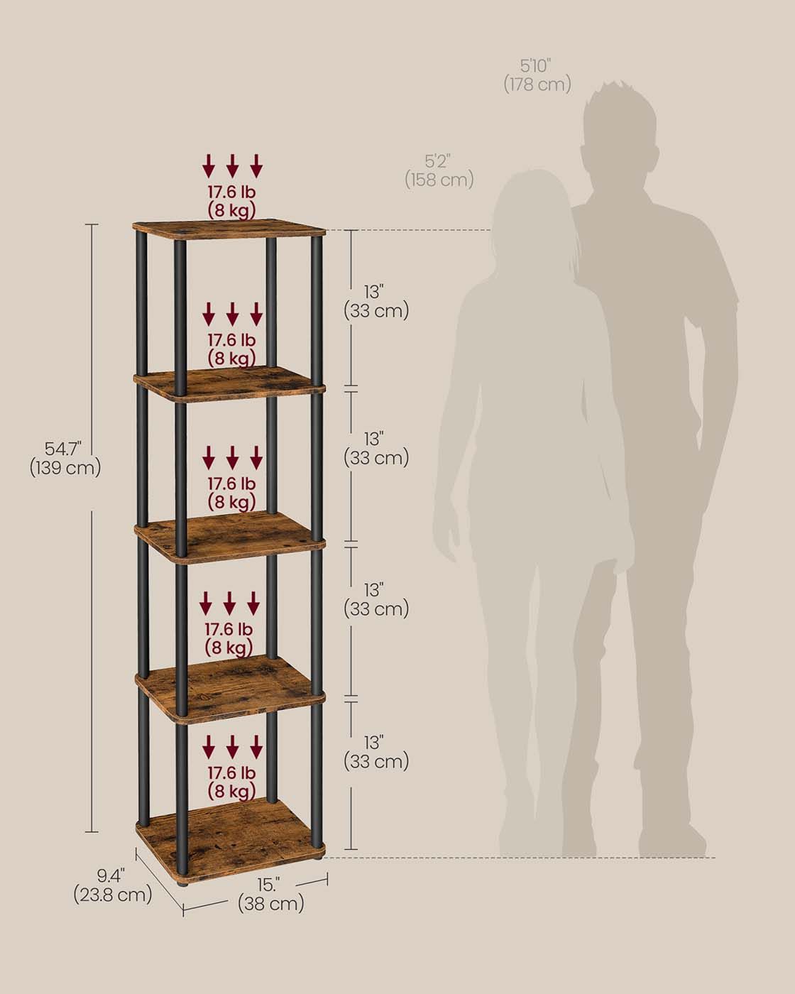 You're reviewing:THISTLEMERE 5 Tier Bookcase - Brown and Black, 23.9cm