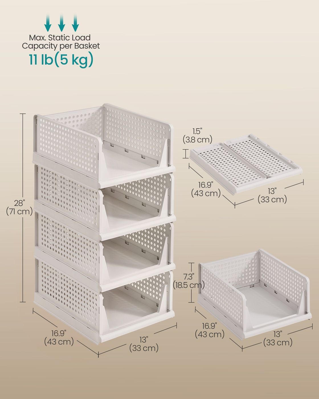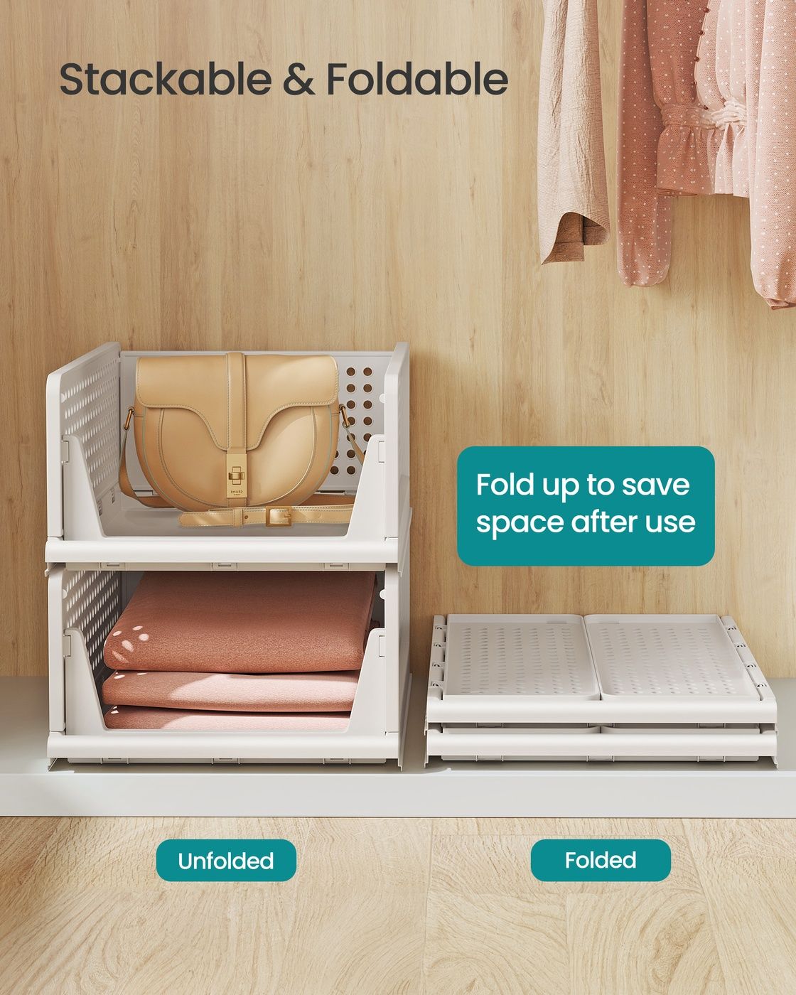 THORNFELL Stackable Wardrobe Closet Organisers Set of 4 - White