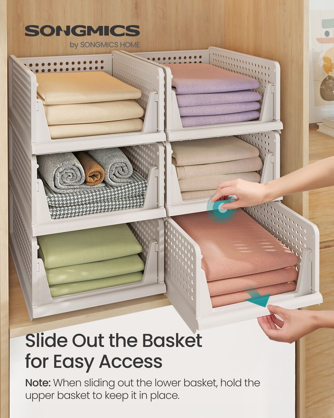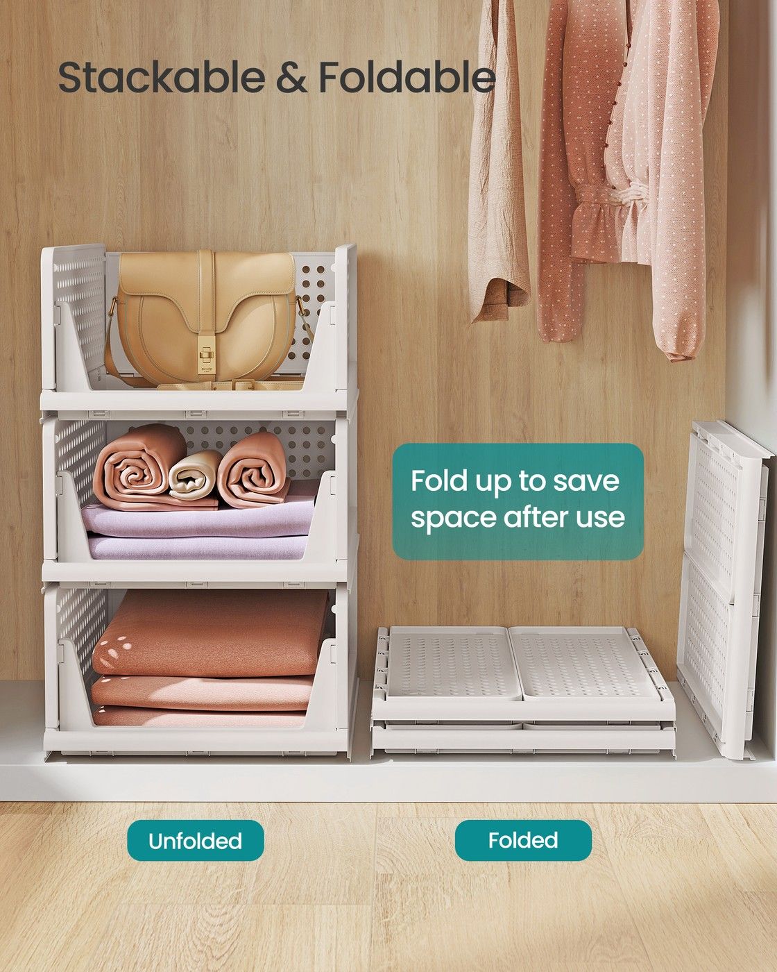 THORNFELL Stackable Wardrobe Closet Organisers Set of 6 - White
