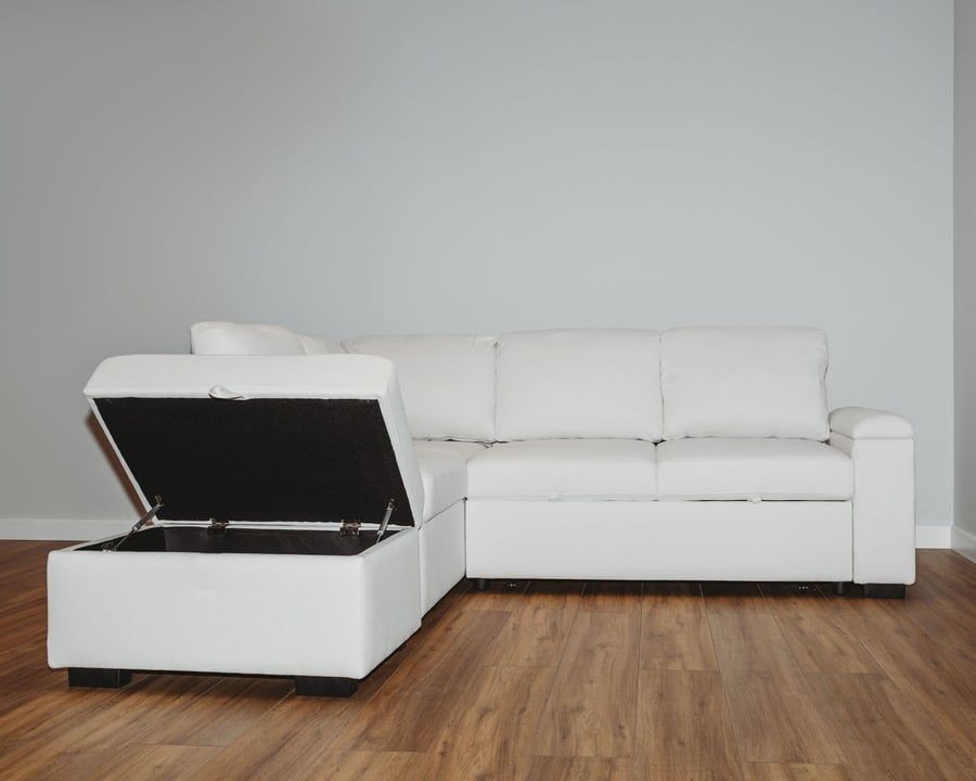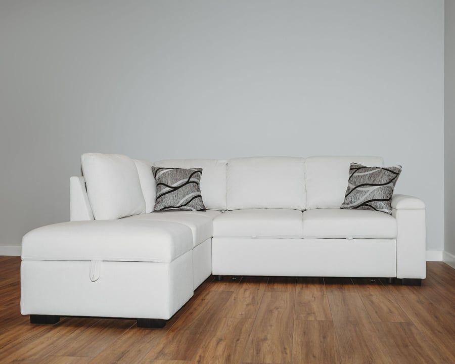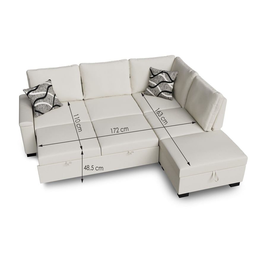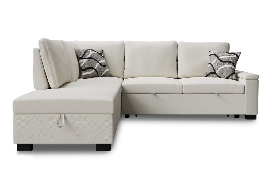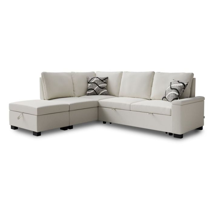 THORNWICK Fabric 4 Seater L Shaped Corner Sofabed - Cream, Left Hand Facing