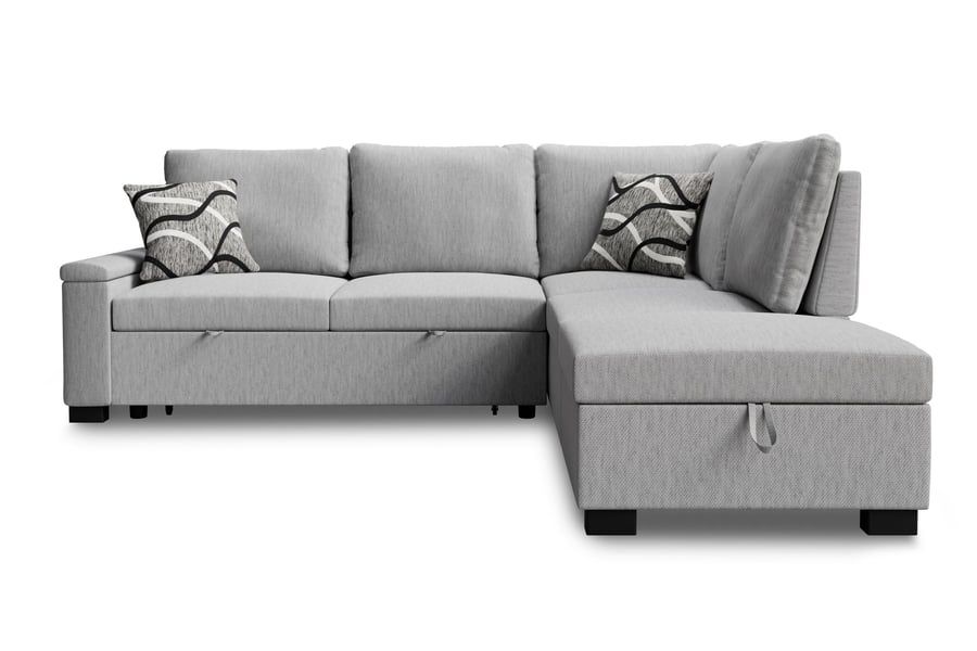 THORNWICK Fabric 4 Seater L Shaped Corner Sofabed - Grey, Right Hand Facing