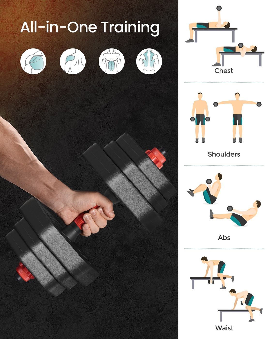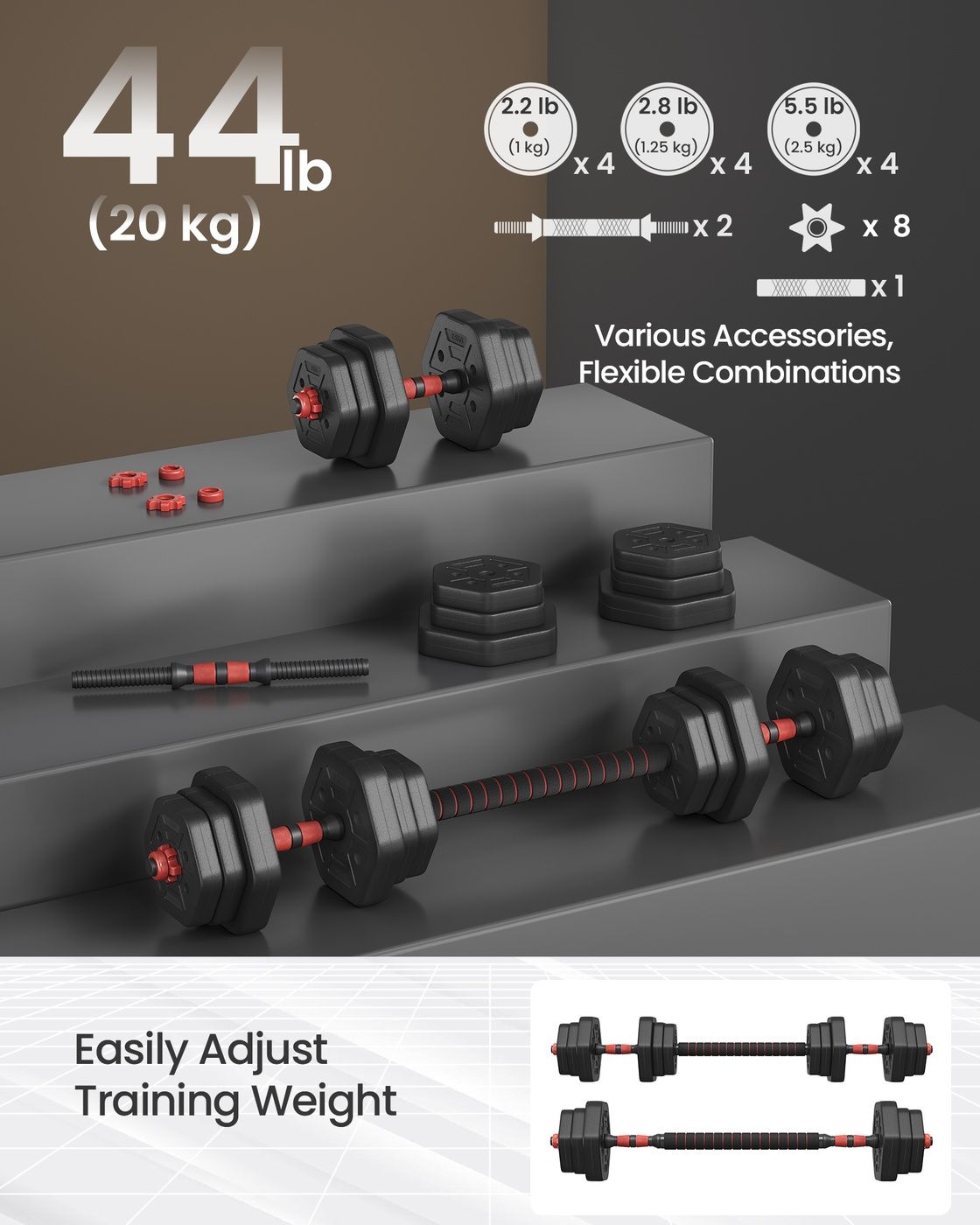THORNWICKE Dumbbell Sets Weight Bars 20 Kg with Connecting Bar - Black
