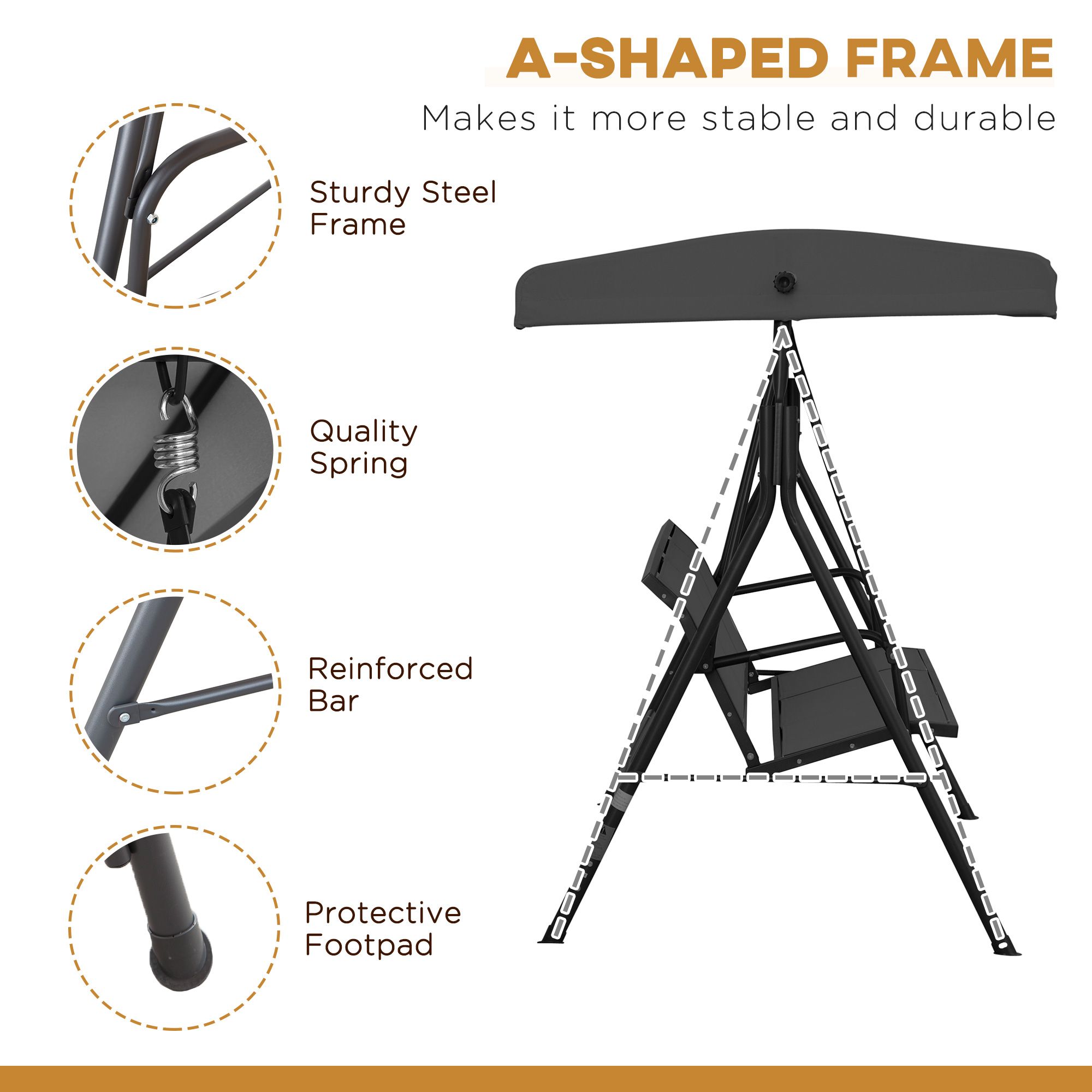 Give yourself a tranquil place to unwind in your garden and outside areas, with this Outsunny garden swing chair. Seats up to three people, so it's spacious enough to take a break with friends or even catch some time to yourself under the sun. The steel frame is tough and stable, with anti-slip feet to protect the floor beneath. Complete with a weather-resistant canopy to protect you from the elements - keeping you cool and dry as you relax.
