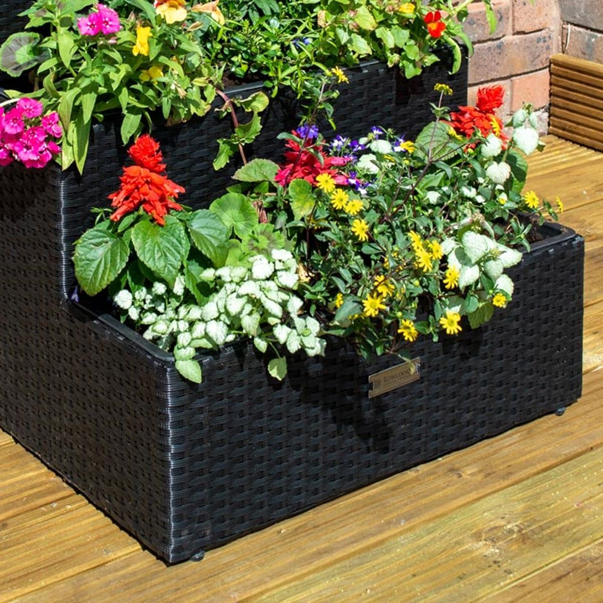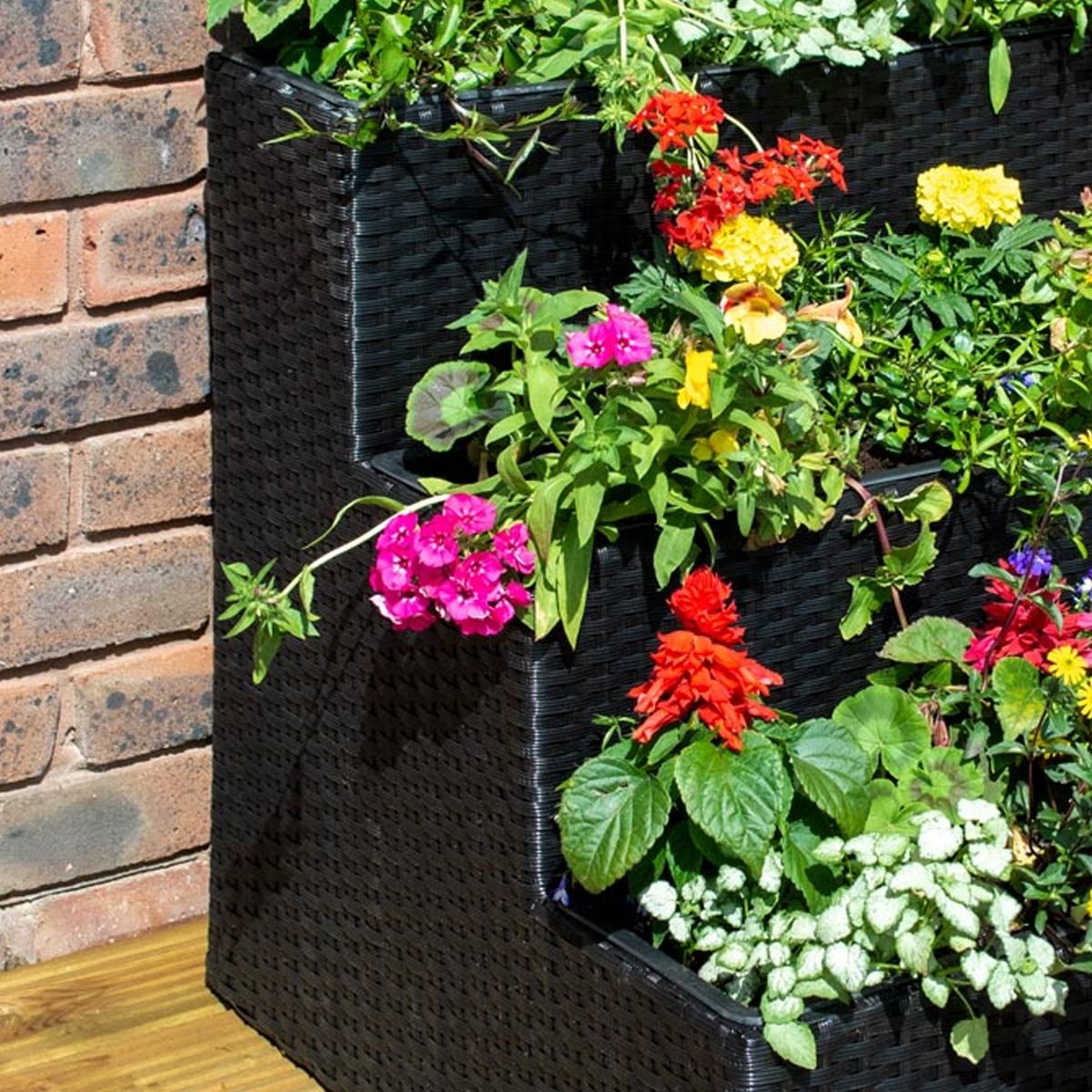 Three Tier Poly Rattan Planter with Removable Liners - Black Weave