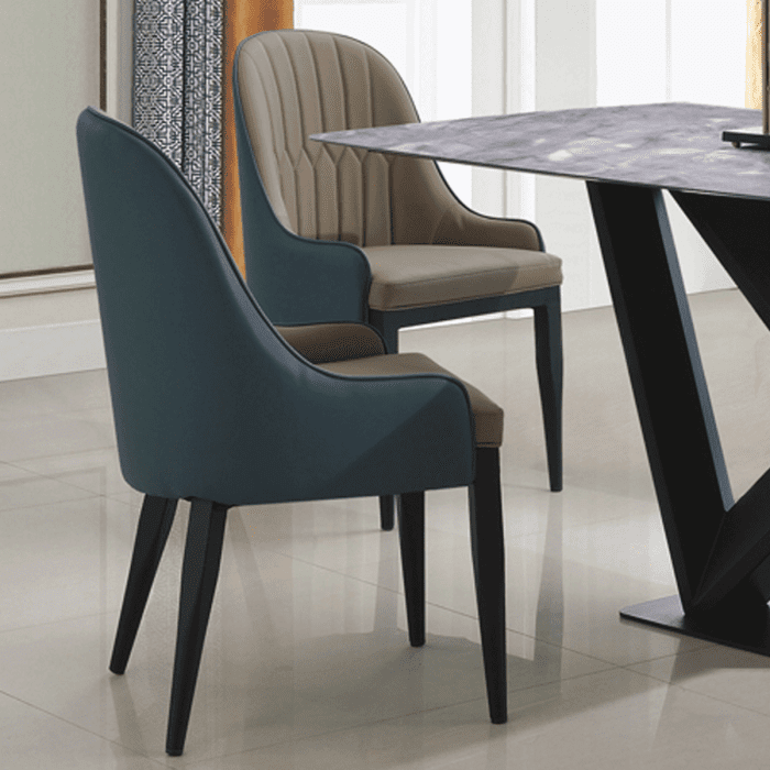 Timeless Elegance Chester Fabric Dining Chair with Sleek Black Metal Legs - Pair