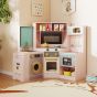 TIORA Corner Kitchen Playset with Pull-out Trash Can-Pink