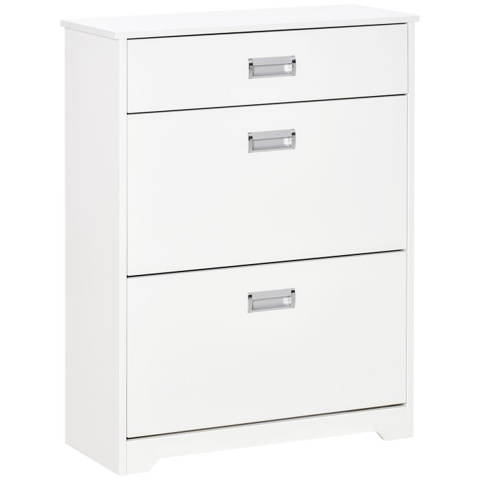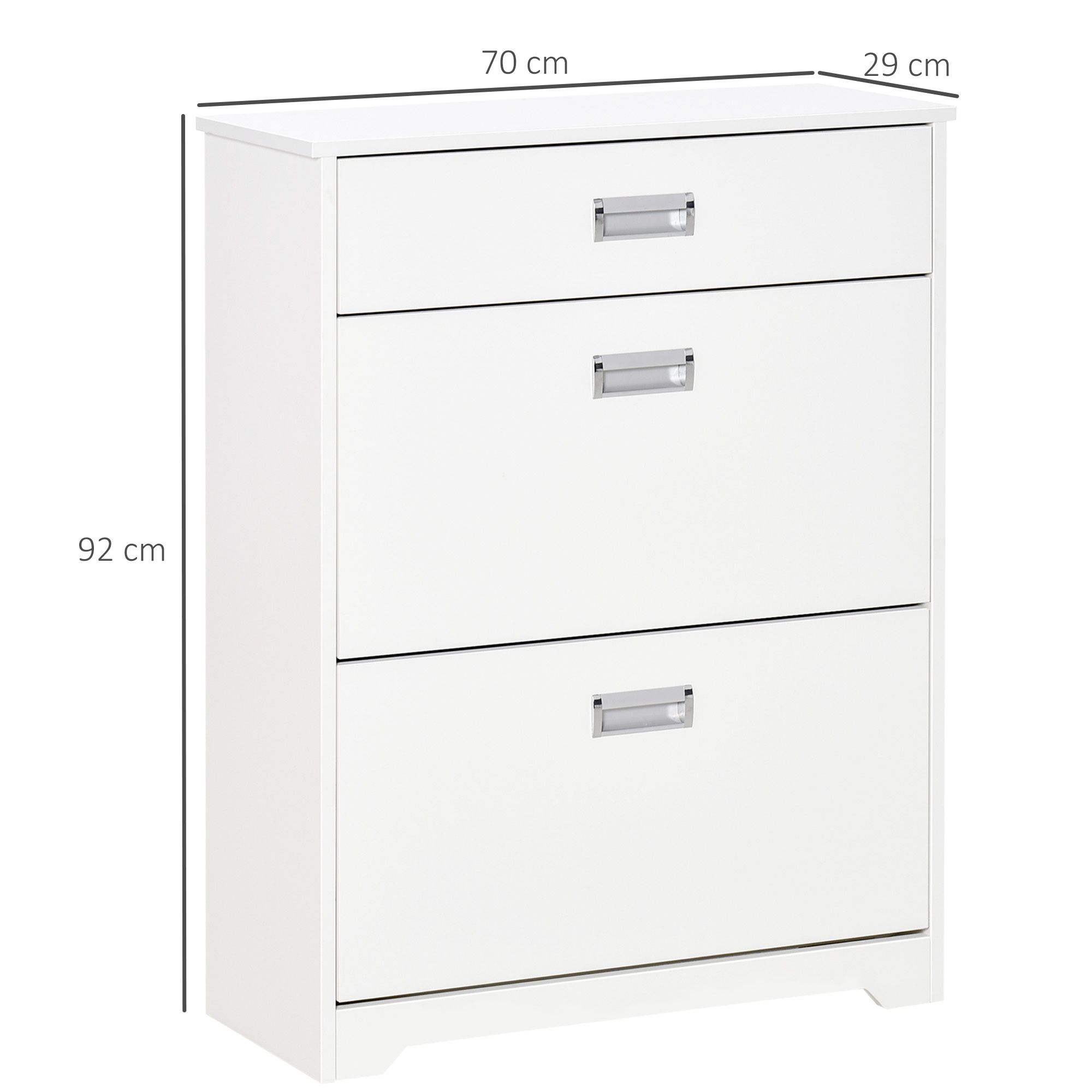 Tipping Shoe Cabinet Storage Rack Entryway Organizer with 2 Pull-Down Doors and Drawer Adjustable Shelf for Hallway Porch Narrow Space White