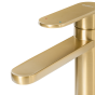 This sleek basin tap is a functional addition to your bathroom. The tap is crafted from brass in a classic matt finish in a gold colour that complements bathrooms in diversified styles. It features a single lever for convenient and easy water temperature and pressure regulation, and a straight spout for an elegant look.