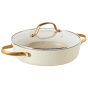 Add a modern accent to your kitchen with this sleek aluminium 10-piece pan set in a classic off-white tone, finished with elegant gold handles. The set includes 3 saucepans with lids, two standard frying pans, and a shallow casserole with its own lid — all designed for practical, everyday cooking. The non-stick ceramic coating makes healthy meals and easy clean-up a breeze, while the oven-safe design adds extra flexibility. Suitable for all stovetops, it’s a beautiful and practical upgrade for any home cook.