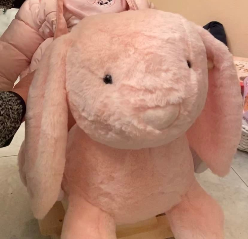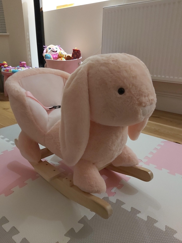 Putting a cute spin on a classic rocking horse, this rabbit ride-on will instantly make your child's day. The seat frame is made from metal - it's solid and sturdy for safe continual use, covered in soft pink plush and made into a cute long-eared rabbit. It features a large seat for them to sit on, a high back to offer body support and two handlebars for them hold on to. On the ear, a sound button is placed which makes cute and realistic sounds for extra fun. It's finished with a thick rocking base which moves the rocker forwards and backwards gently. 3 x LR44 batteries are required and are included.