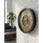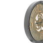 This eye-catching wall clock features an open design with visible gears, adding a bold mechanical character ideal for industrial and modern interiors. Crafted from durable synthetic material, it offers the rugged look of metal while remaining lightweight and easy to hang. Its Roman numerals and exposed clogs create a striking blend of vintage charm and contemporary style, making it a standout piece in any room.