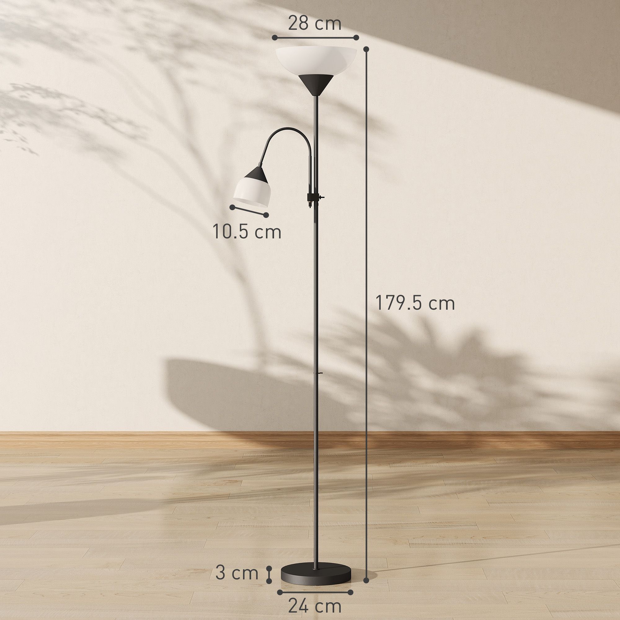 TORVIN LED Floor Lamp Standing Lamp Adjustable Gooseneck 180cm - Black