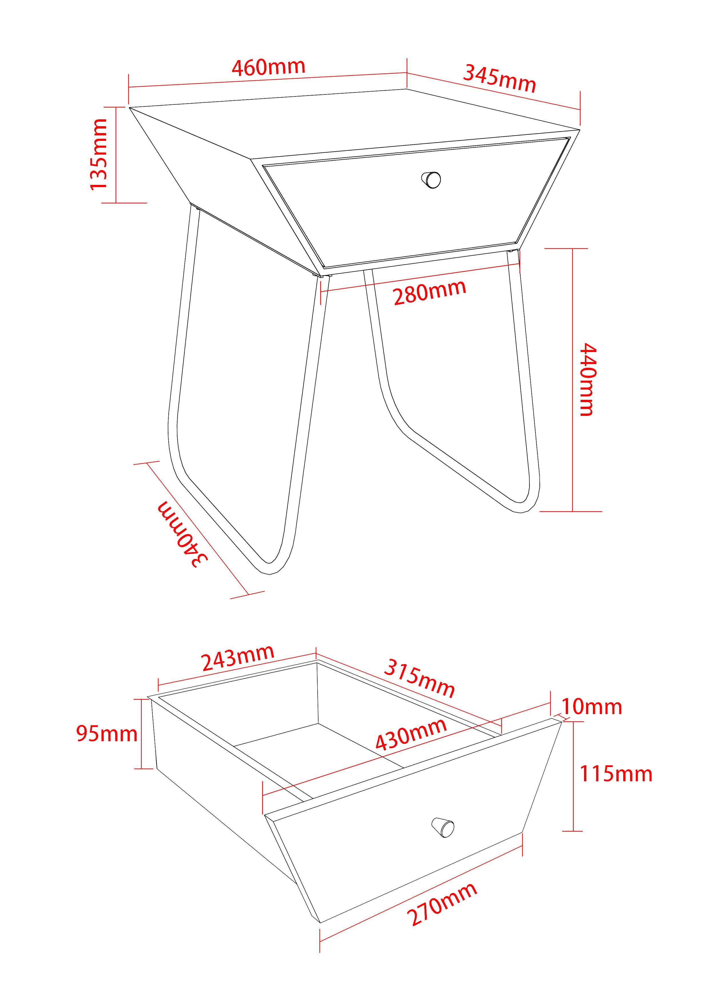 TOVEN 1 Drawer Metal Bedside Cabinet Sled Legs - Black and Gold