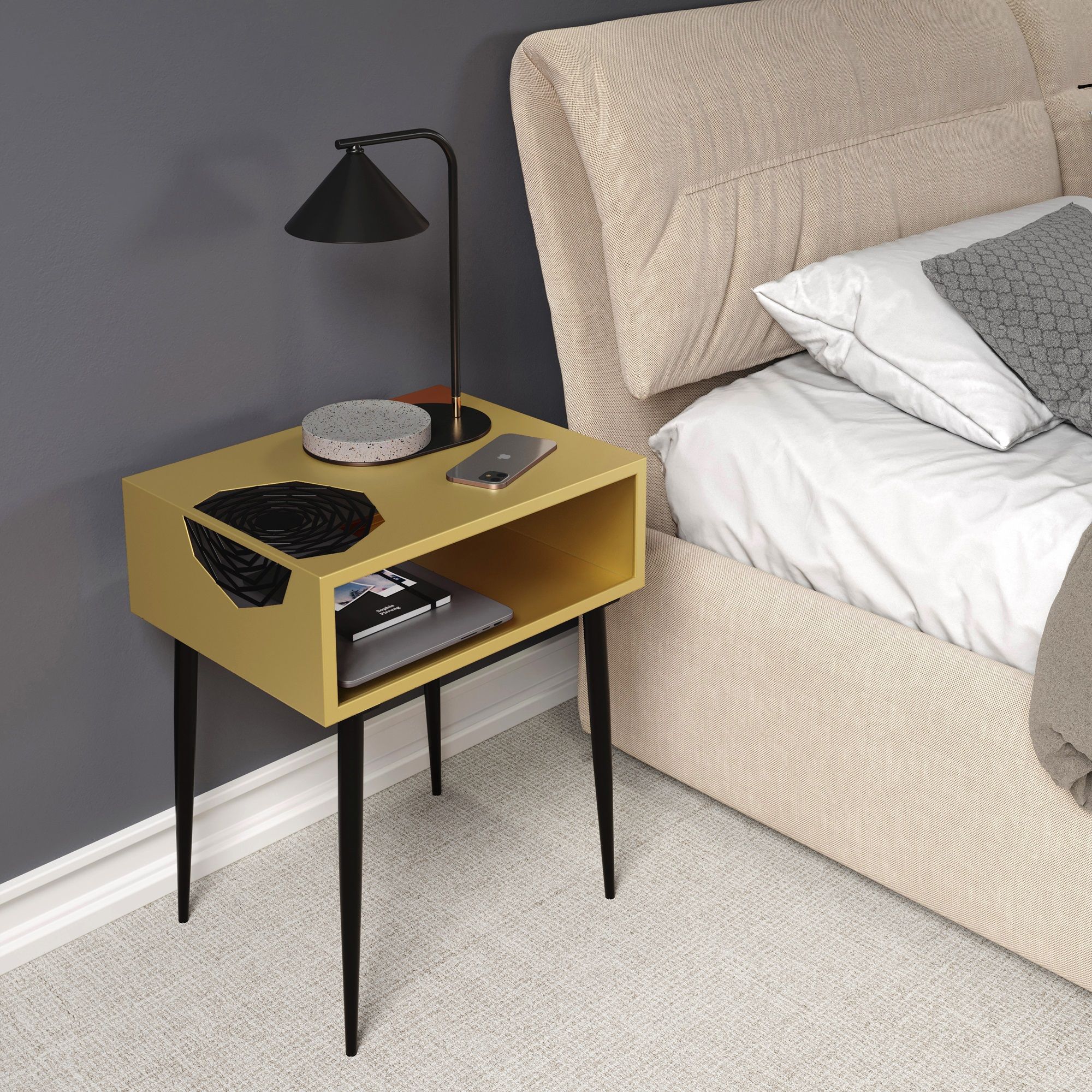 TOVEN Metal Bedside Table - Gold and Black