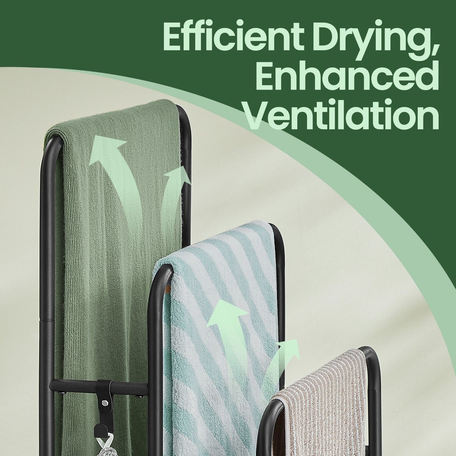 Towel Rack - VERRA Freestanding 3 Tier Blanket Holder with Storage Shelf - Black