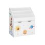 Toward New AdventuresThe space-themed design, with fun sun, moon and asteroid patterns, will help spark exploration, curiosity, and creativity in your little one. The 3 shelves and a big compartment are spacious enough to hold all their books and games. Accompany Their GrowthThe storage shelf made with quality materials and rounded corners accompanies the growth of your child. With open shelves at an ideal height and a container with easy access, they'll learn how to pick up and put back objects by themselves.