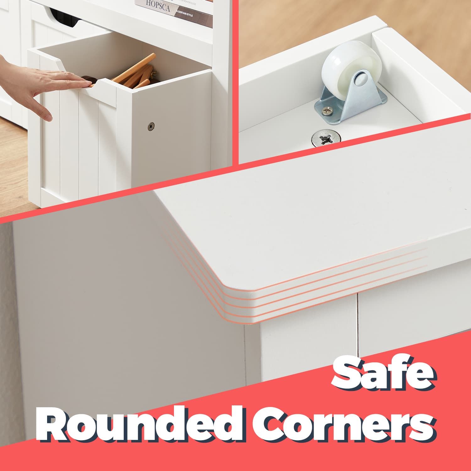 Toy Storage Cabinet - GRANZA Kids Organizer with Wheels and 3 Drawer - White