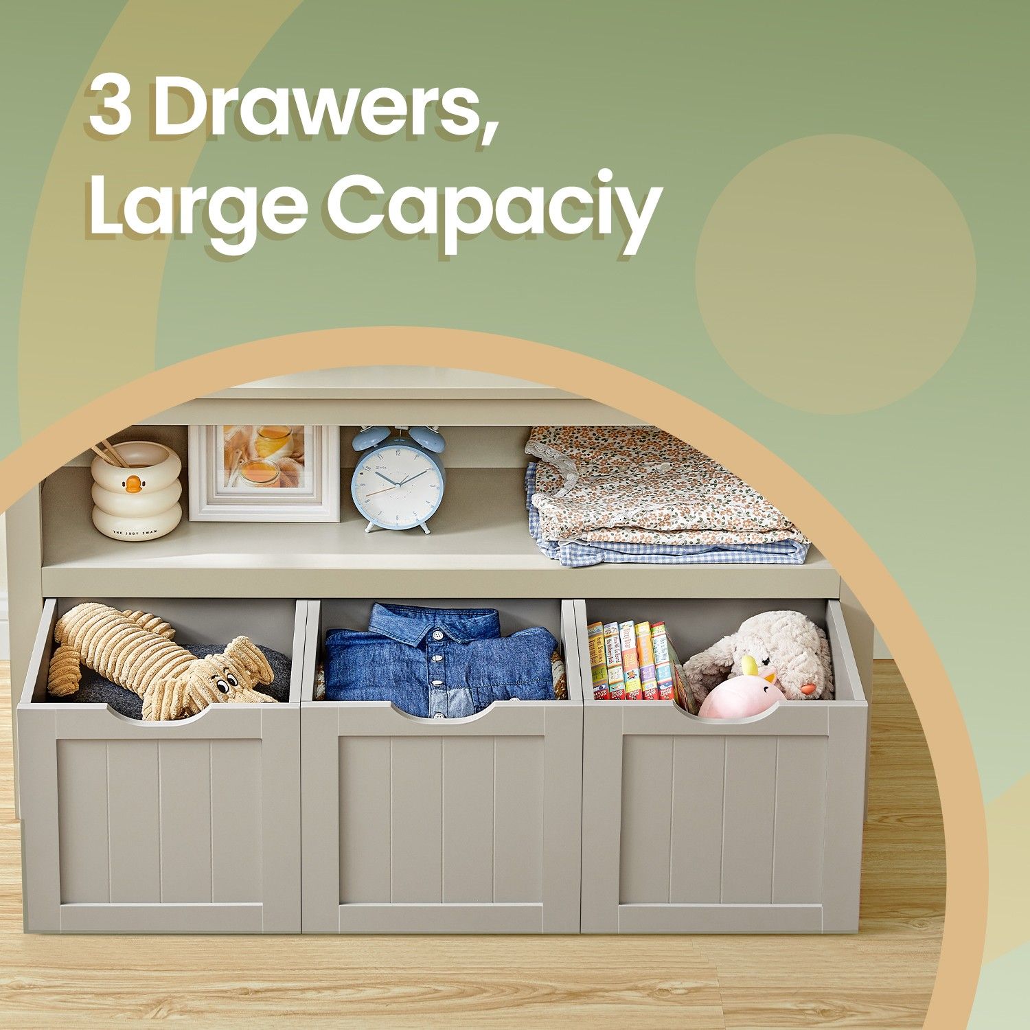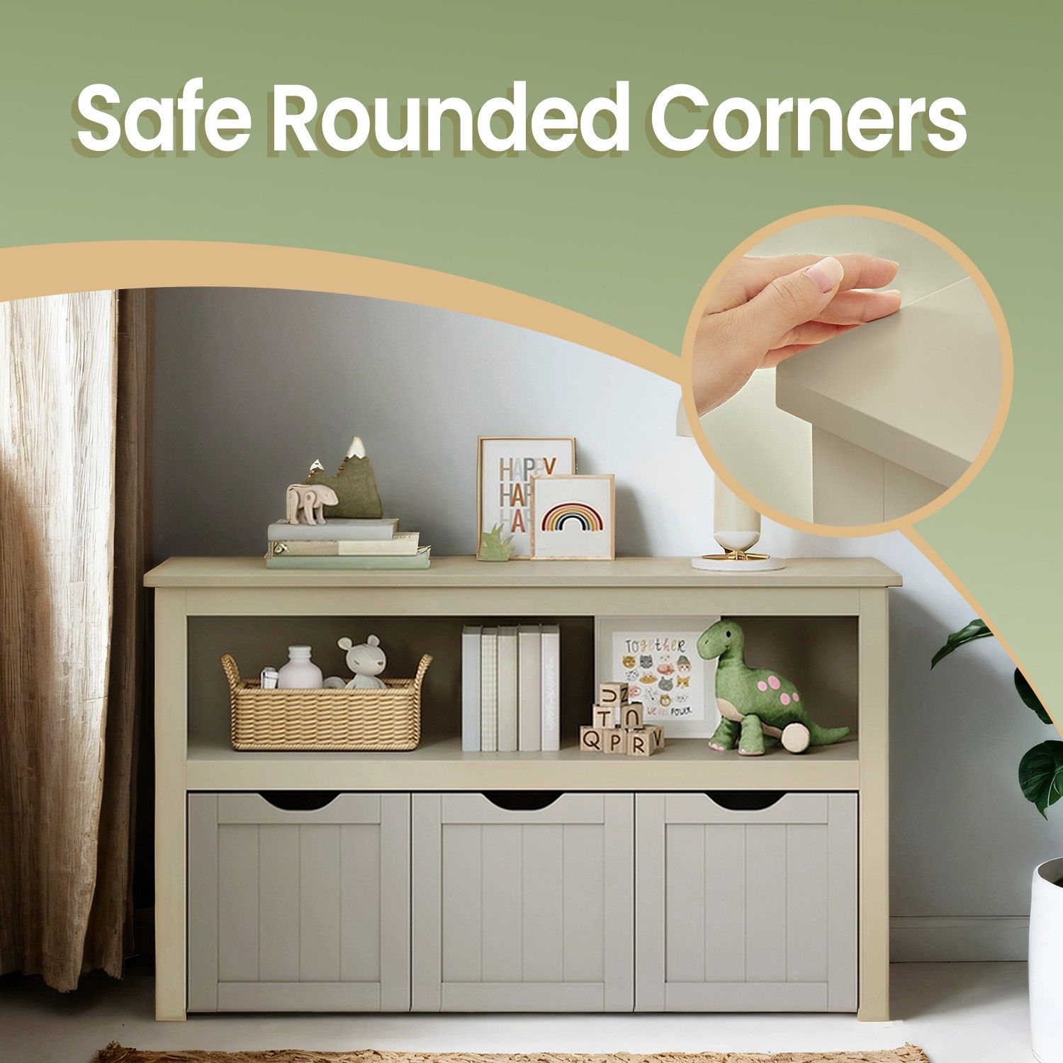Toy Storage Cabinet - VERRA Kids Storage 3 Drawer with Wheels - Camel Brown Grey