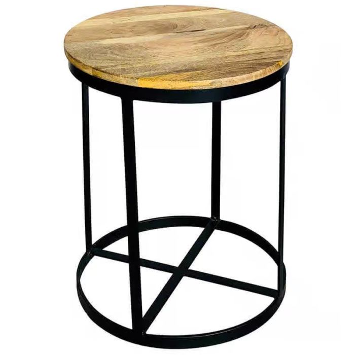 Tracey Industrial Iron 41cm Round Mango Top Lamp Table - Light Wood Tone