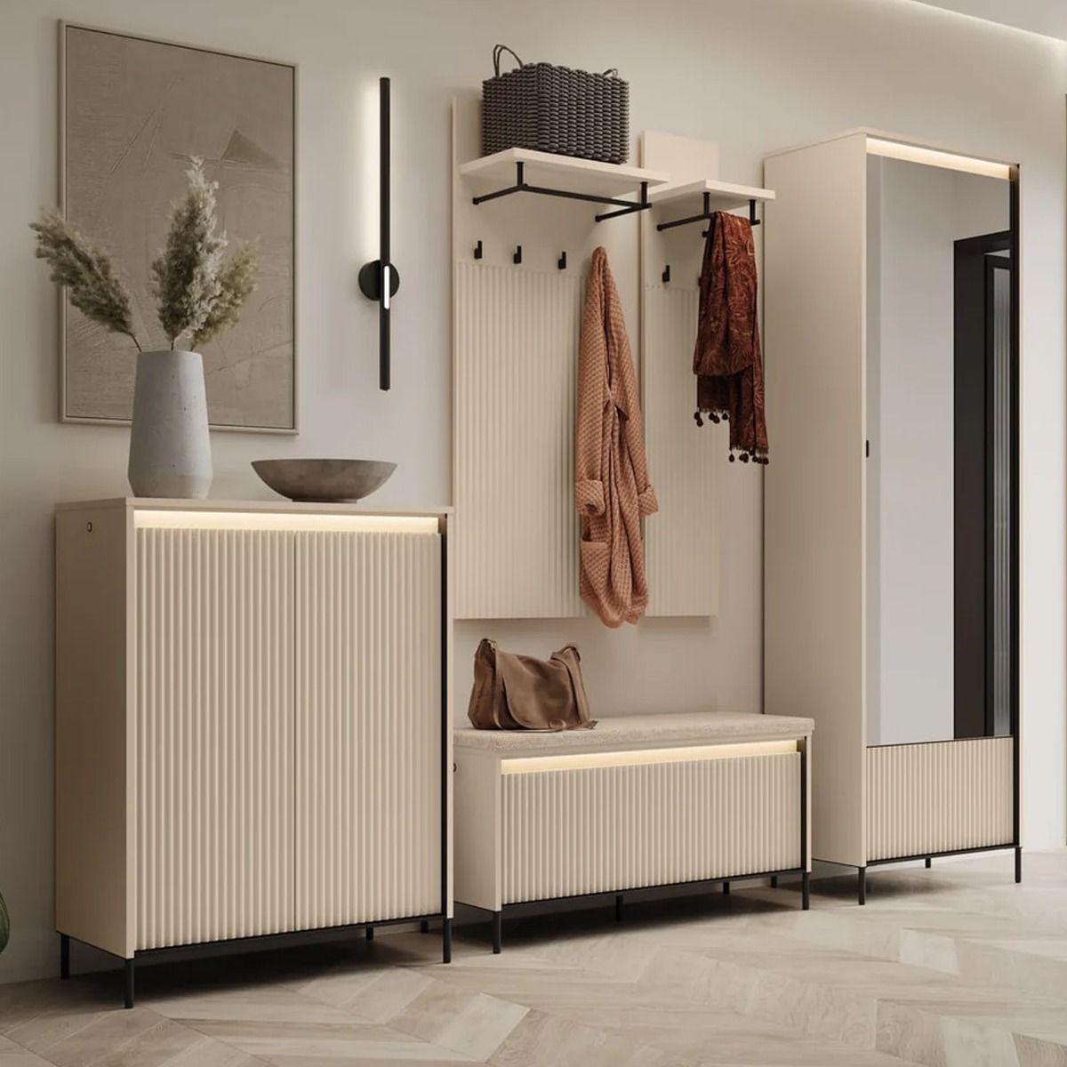 The TRADESSA TG-05 Hallway Bench from our TRADESSA Collection is a stylish and practical seating solution for any hallway. Made from high-quality 16mm laminated board, it features one pull-down door, one shelf, and LED lighting. Perfect for putting on shoes or storing essentials, this bench combines modern design with functionality.