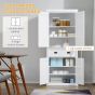 Traditional Colonial Freestanding Kitchen Cupboard Storage Pantry Cabinet - 76L x 40.5W x 184H (cm) White