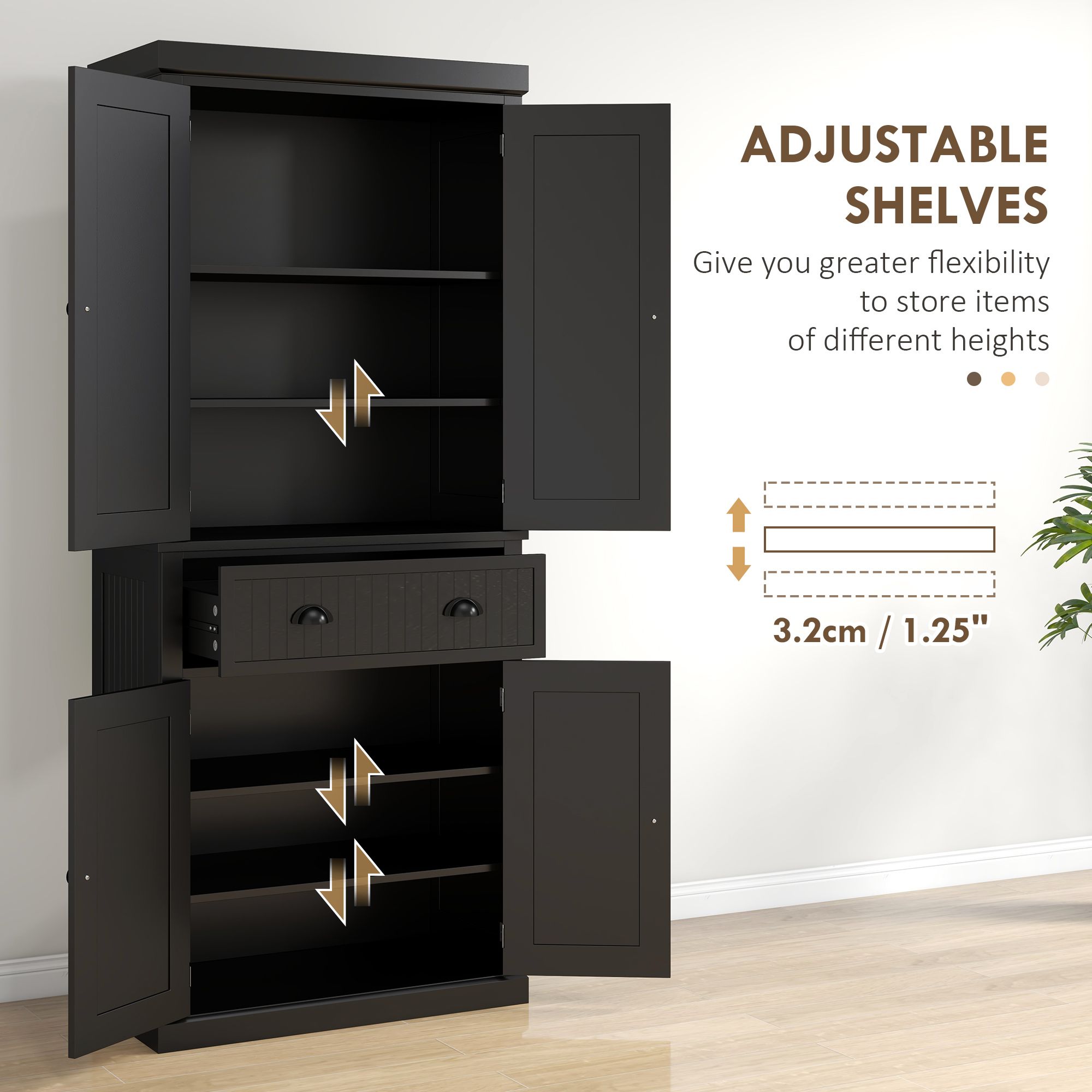 Traditional Kitchen Cupboard Freestanding Storage Cabinet with Drawer, Doors and Adjustable Shelves, Black
