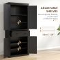 - Movable Shelves: Three adjustable shelves are placed in the top and bottom cabinet of this kitchen storage unit, giving you greater flexibility in storing items of different heights and sizes.
