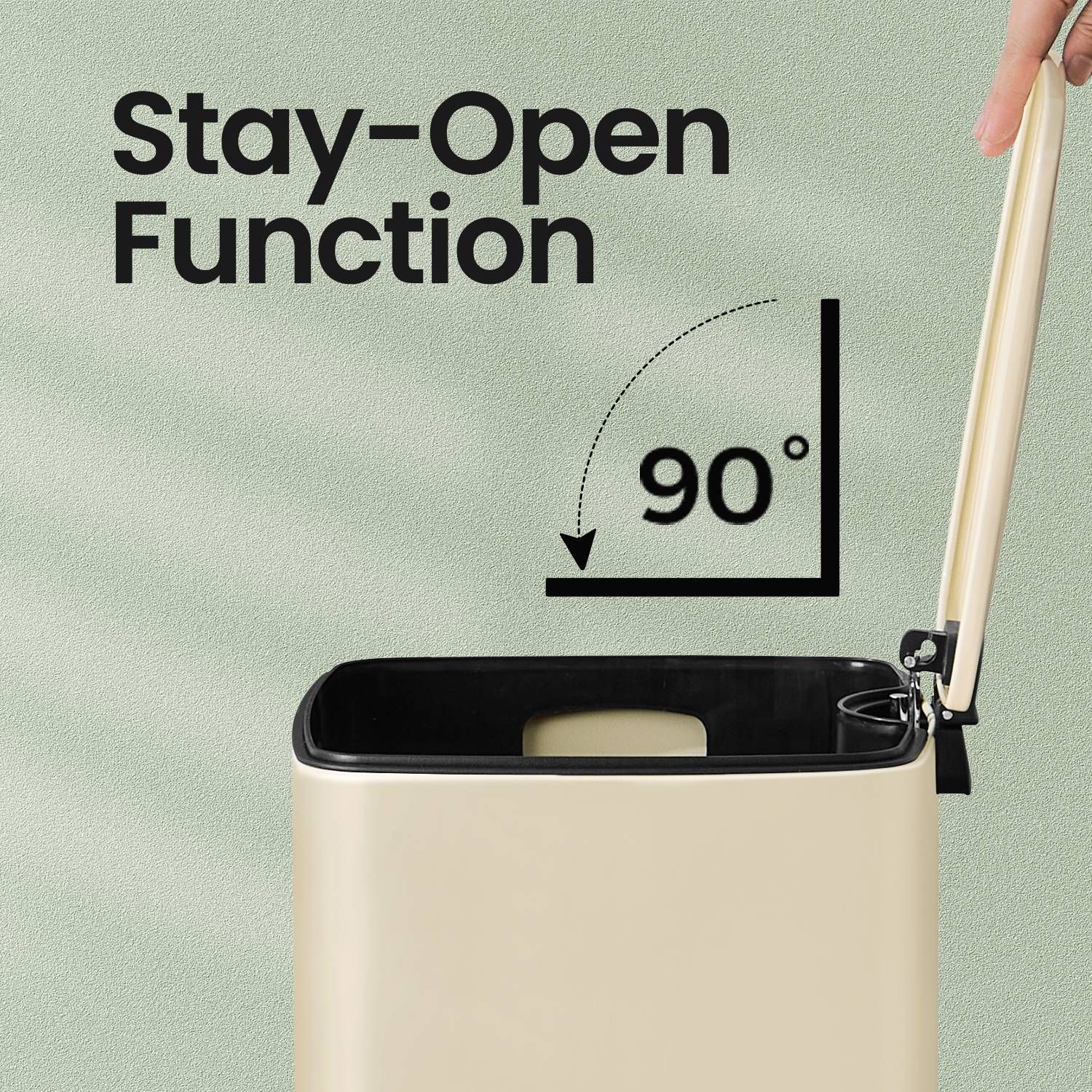 Trash Can - VERRA 20L Kitchen Garbage Bin Soft Close Stays Open - Sand Beige