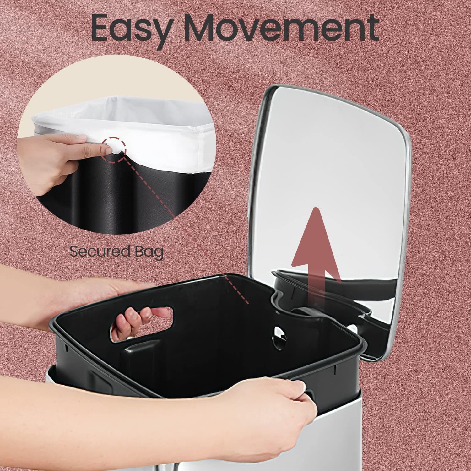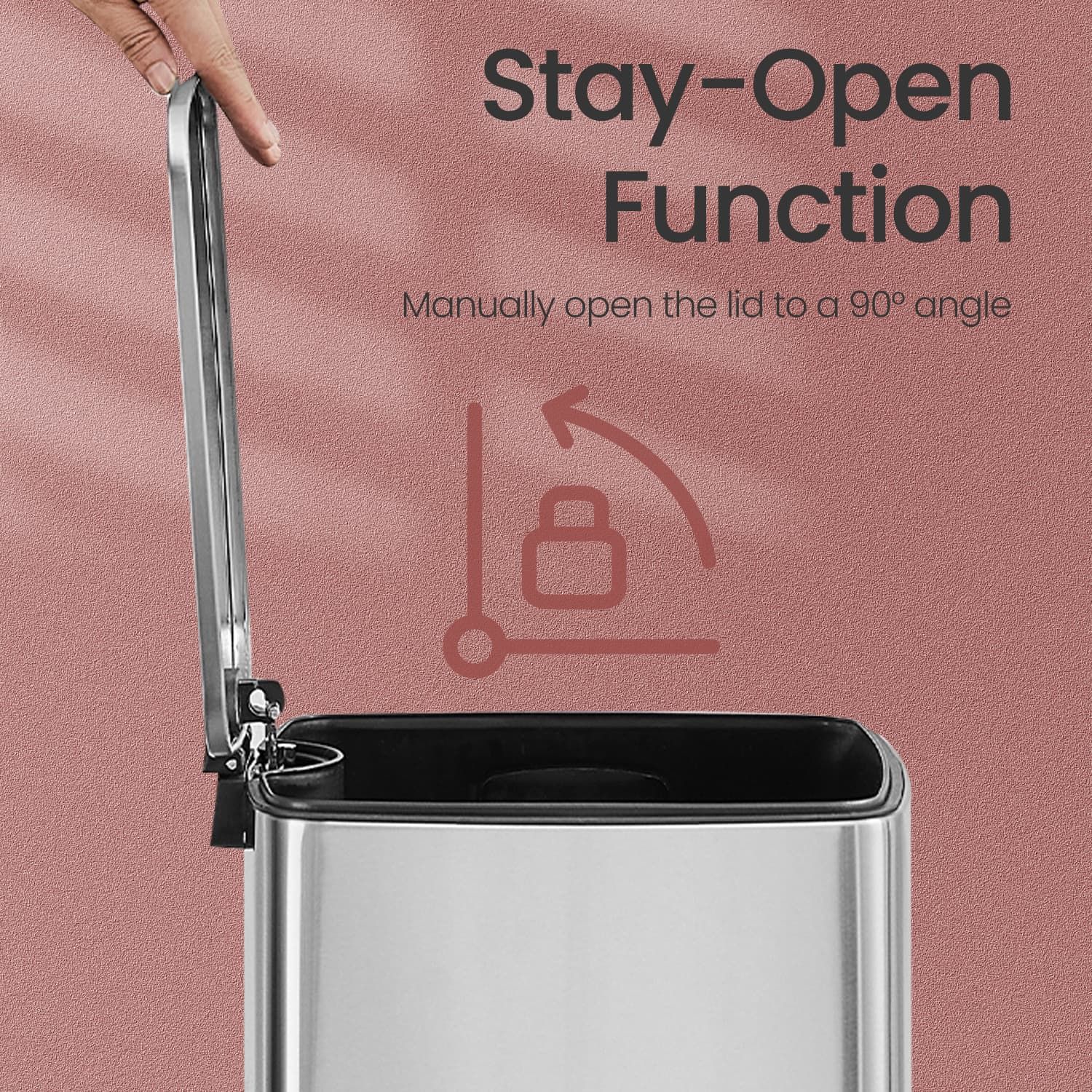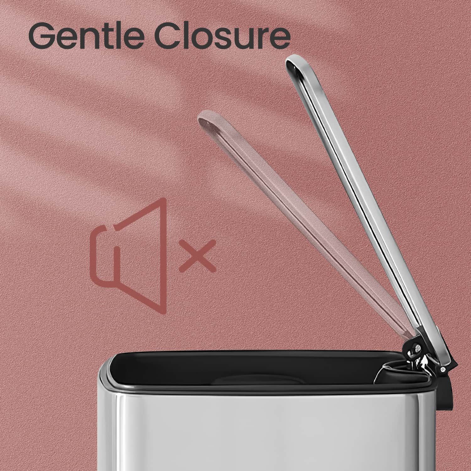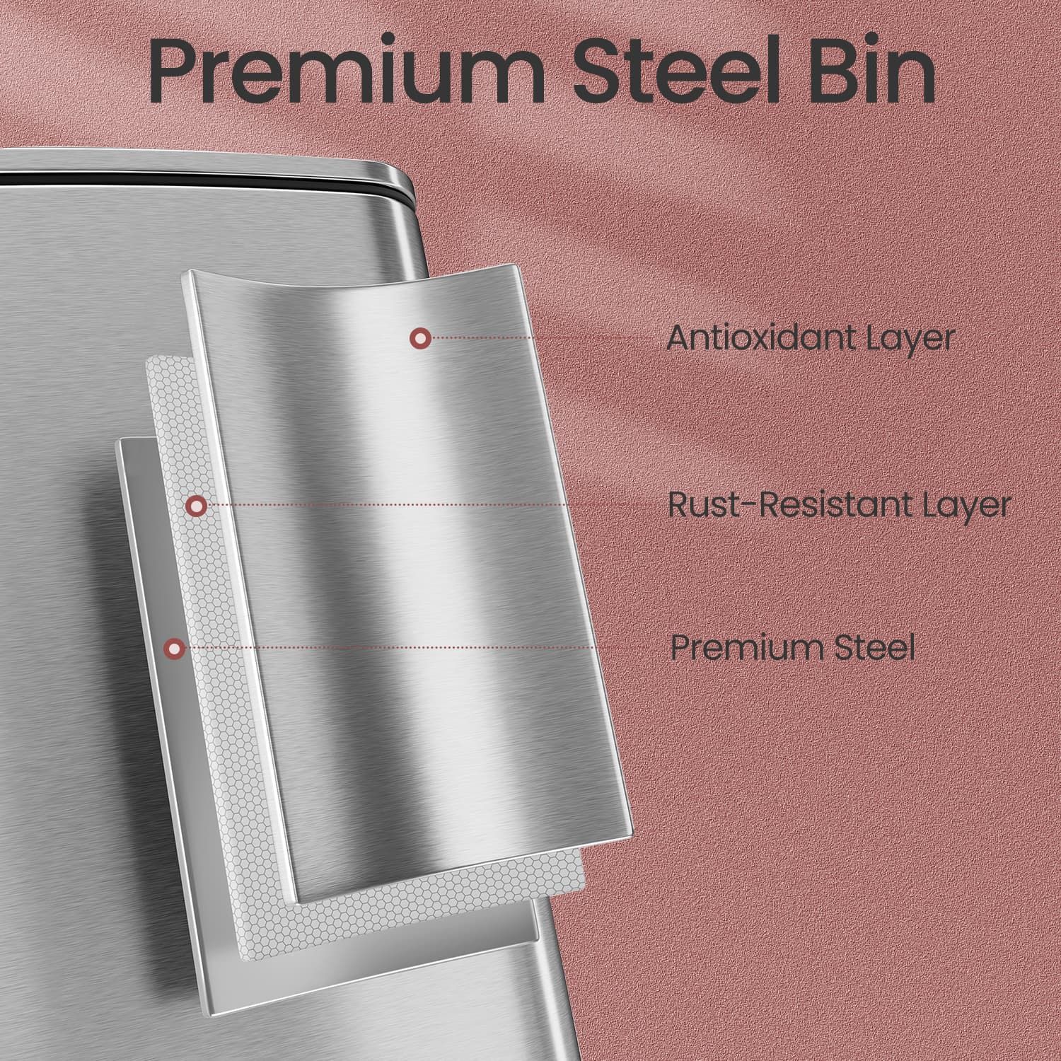 Trash Can - VERRA 8-Gallon Stainless Steel Kitchen Garbage Bin - Silver