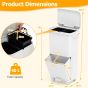The included classification stickers make sorting a breeze. With its foot pedal and easy-open lid, disposal is a convenient experience. Move the trash can easily with 4 universal wheels, 2 lockable for stability, across any surface. Versatile and practical, it is perfect for kitchens, living rooms, dining areas, and more, thanks to the convenient side handles for hanging bags. Maintaining this trash can is a simple task, with its smooth surface for easy cleaning, and assembly requires no tools, saving you time and effort. More user-friendly details await your discovery. Innovative Multi-Section Design: The trash can features 24. 5 L removable bins and a spacious 15. 5 L lower compartment, perfect for sorting recyclables, compost, and trash. Included garbage classification stickers make classification simple and effective. Dispose of Trash Effortlessly: Say goodbye to messy trash experiences with the waste bin.