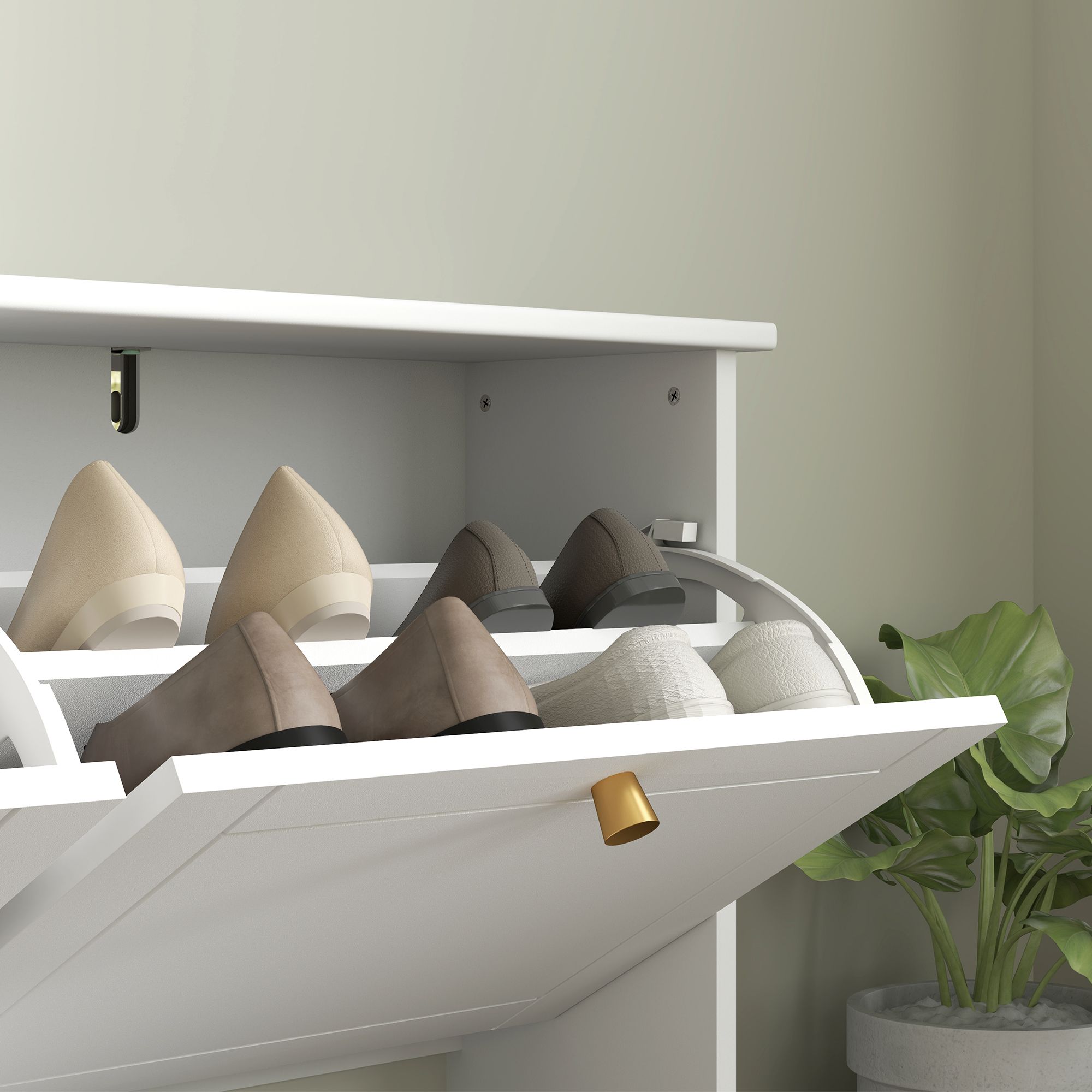 TREKLA 4 Drawer Shoe Storage Cabinet Flip Doors Adjustable Shelves for 16 Pairs - White