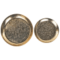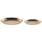 Bring a glamour flair to your interior décor with this set of two decorative dishes. Featuring an oriental, hammered texture, they make a statement on any tabletop. They’re perfect if you want to display candles or as a place to store random bits and pieces. The set suits well in a bedroom as well as hallway. Details: Color: Gold. Main material: Iron. Weight: 1.2 Assembly: Does Not Require Assembly Overall Dimensions: 40x40x4