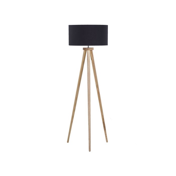 Inspired by industrial design, the floor lamp that complements your living room, bedroom or a hallway. Natural oak wood legs ensure lamp stability and give it an elegant look. The drum-shaped cover diffuses ambient light, allowing for dimmer illumination. Robust craftsmanship guarantees the lamp sturdiness and longevity. Details: Color: Black, Light Wood. Main material: Oak Wood. Additional material: Polycotton. Material Composition: 100% Tetron Cotton Weight: 3.1 Assembly: Full Assembly Required Wood type: Quercus variabilis Wood Origin: China