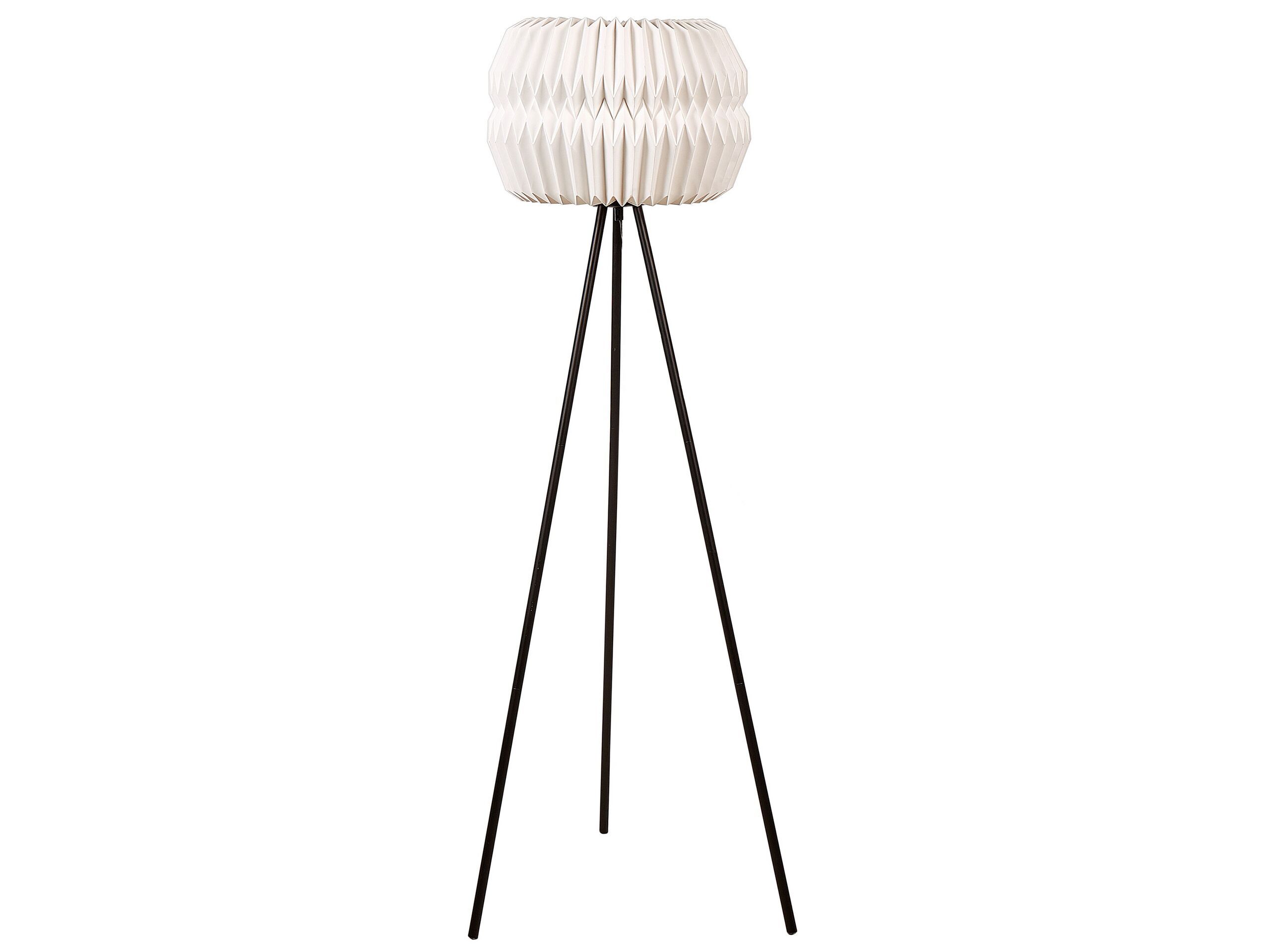 Upgrade your living room or bedroom with this stylish, modern tripod floor lamp. Its shade, made out of paper, ensures the light will give a pleasant, warm glow, and will illuminate the whole area with ease. Placed on black, metal legs, the piece is very stable, so you don't have to worry about it toppling, especially since it comes with a long cable, so you can place if far from an electrical outlet. Due to materials used, the lamp will last for many years, even without daily care. Details: Color: White, Black. Main material: Paper. Additional material: Metal. Weight: 1 Assembly: Full Assembly Required