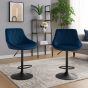 TRIVANTE Bar Stools Set of 2 Adjustable Swivel Dining Chairs Velvet Upholstery - Blue