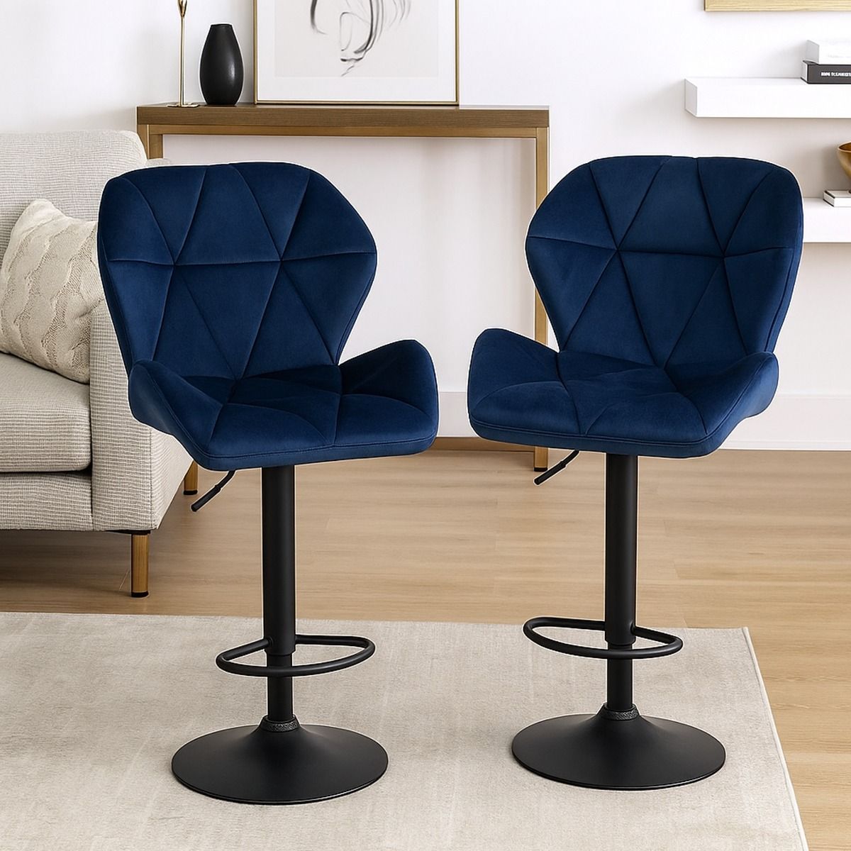 TRIVANTE Bar Stools Set of 2 Adjustable Velvet Swivel Dining Chairs with Footrest - Blue