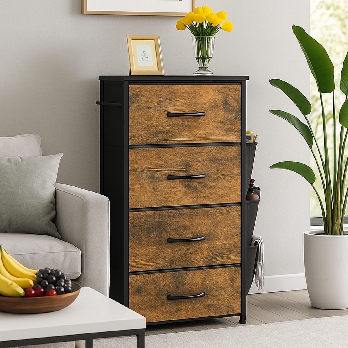TRIVANTE Brown Fabric Chest of Drawers - Tallboy, Medium-sized, 4 Drawers
