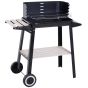 Trolley Charcoal BBQ Barbecue Grill Outdoor Patio Garden Heating Smoker with Side Trays Storage Shelf and Wheels