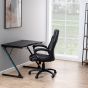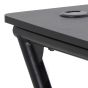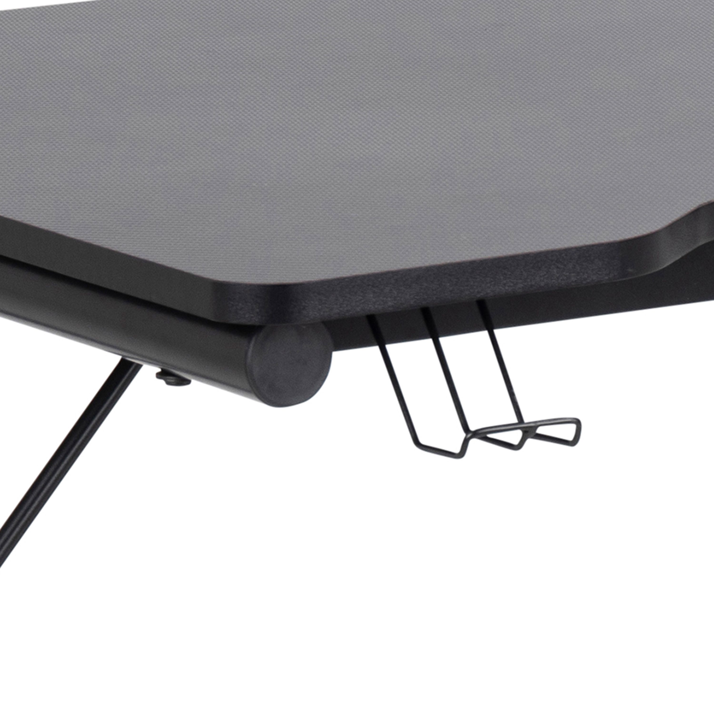 Get ready to level up your gaming setup with our gaming desk, designed with a robust carbon rough melamine top and a sturdy matte black steel base. It comes equipped with a cup holder, headset hanger, and wire hole for an organized and immersive gaming experience.