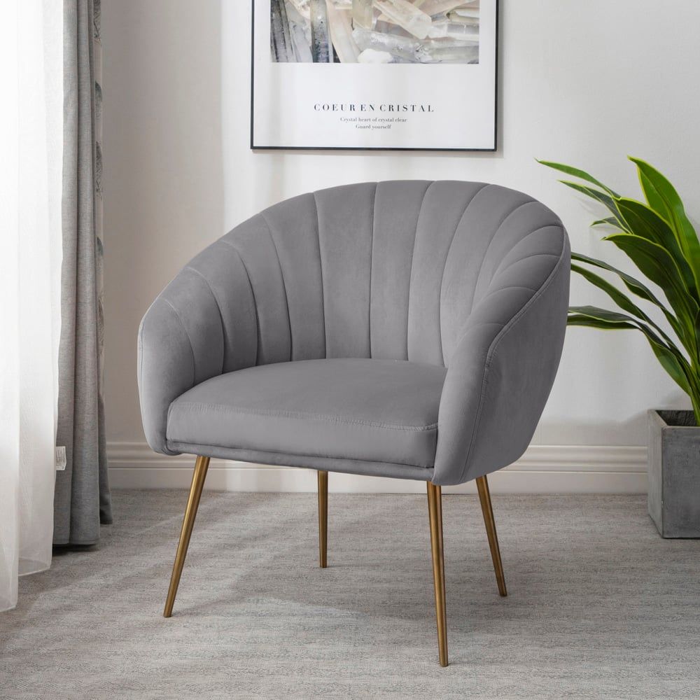 Tub Chair - COLVARA Velvet Fabric Chair - Grey