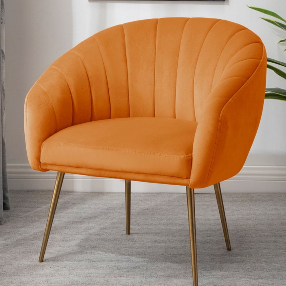 Tub Chair - COLVARA Velvet Fabric Chair - Orange