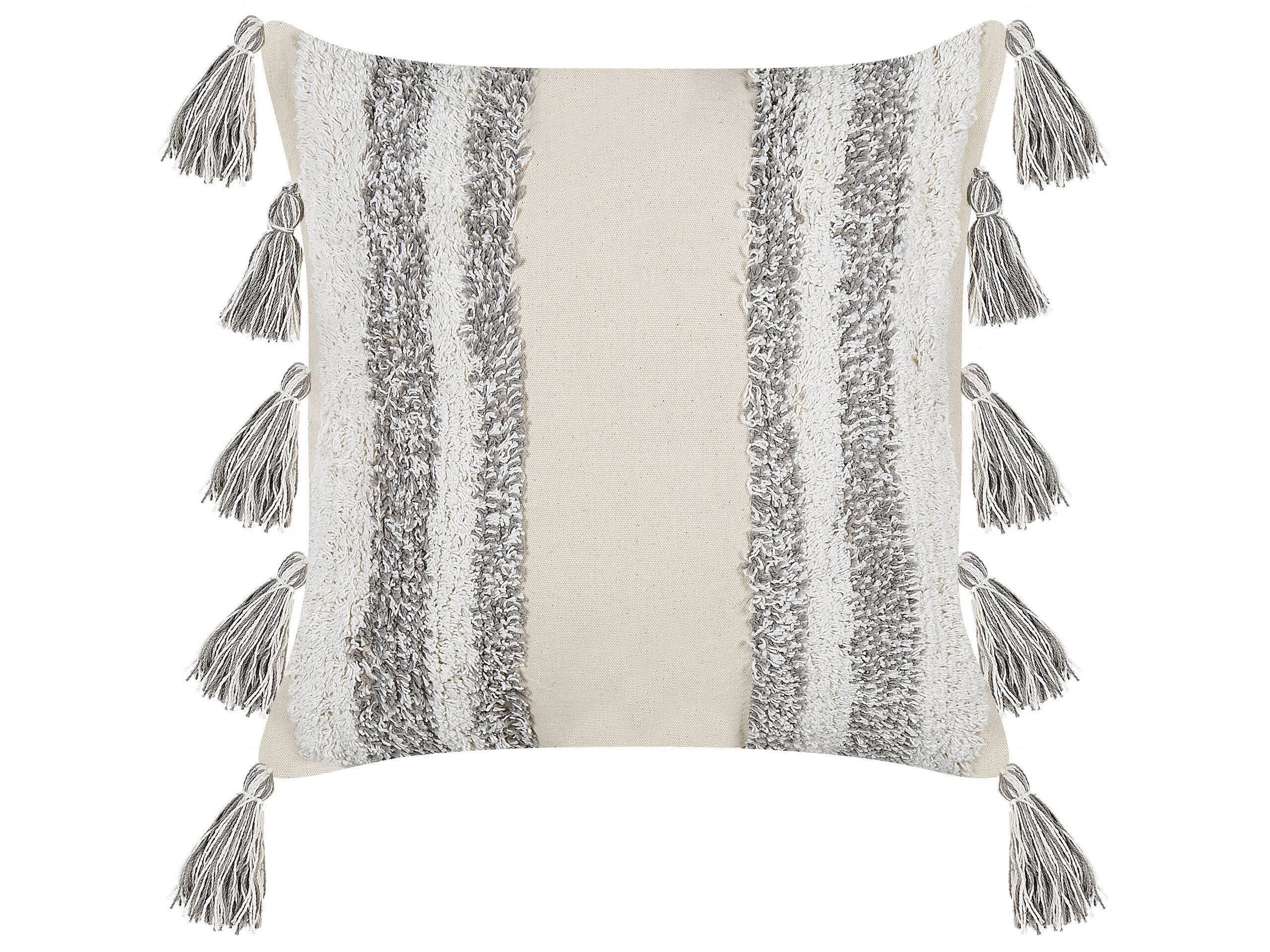 Tufted Cotton Cushion with Tassels 45x45cm Beige and Grey