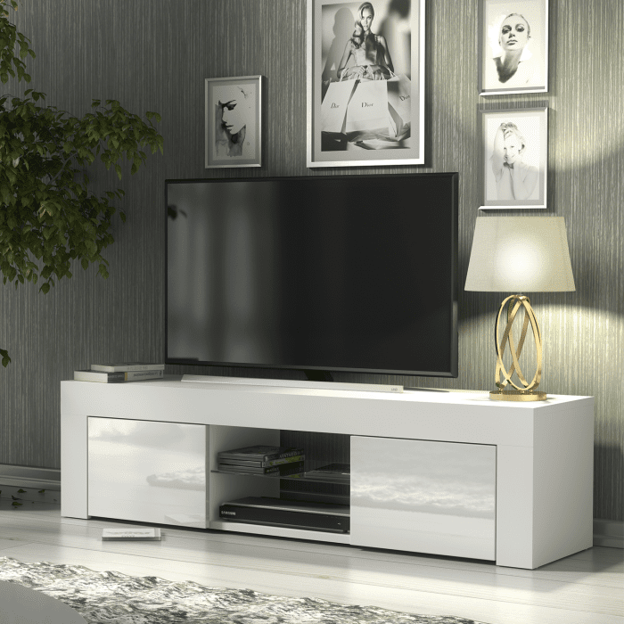 TUSSI Modern TV Unit Cabinet Stylish Matt Body And Gloss Doors 130cm - White