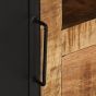 This industrial-styled wooden TV cabinet makes a decorative as well as practical addition to your decor. The stereo cabinet is made of rough mango wood, a tropical hardwood with the strength to bear the weight. It also stands the wear and tear of time. The craftsmanship and the beautiful wood grains make every piece of furniture unique and slightly different from the next. Additionally, this TV stand has ample storage space for keeping your essential items organised and within reach. Important note: Colours and grains may vary from piece to piece, making each piece unique; the delivery is random.