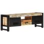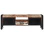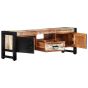 This classic wooden TV cabinet, featuring a unique design, instantly adds a touch of industrial style to your current living space. Solid reclaimed wood: Solid reclaimed wood consists of reused timbers such as teak, mango wood, pinewood, and beech. These materials are recycled from old buildings such as factories, sheds, and boats. This makes it a very environmentally friendly option in furniture manufacturing. As every piece is handmade and unique colours will vary for each product. You might see some blue, green, and sometimes, orange, red or pink.Powder-coated iron: The iron with the black powder coating finish of the TV stand provides extra stability.Spacious storage: This TV unit features three compartments and a drawer, providing ample storage space for keeping your essential items organised and within reach.Practical doors: Keep your space clutter-free by hiding small essentials behind the doors of this media cabinet. Note:The colours may vary from piece to piece, making each piece unique and slightly different from the next. The delivery is random, ensuring the exclusivity and individuality of your product.Each product comes with an assembly manual in the box for easy assembly.