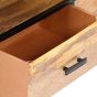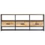 If you're looking for a simple touch of the rustic as well as industrial charm to add to your interior decor, our solid wooden TV cabinet will do the trick. Equipped with 3 drawers and 3 shelves for various items, this TV stand will definitely be a practical and eye-catching addition in your home. Made of solid mango wood with a natural finish, this HiFi cabinet exudes an original look. The exquisite craftsmanship and the beautiful mango wood grains make every piece of furniture unique and slightly different from the next. Additionally, the powder-coated iron frame contributes to the stable and sturdy structure and adds to the stereo cabinet's industrial style as well. Important note: Variations in colour and wood grain makes each of our plasma cabinets unique and slightly different from the next; the delivery is random.