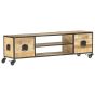 This stylish industrial wooden TV cabinet will make a great decorative addition to your bedroom or living room. This TV cabinet is made of solid mango wood. Mango wood is a dense and robust hardwood with artistic brown or golden streaks and contours on its surface. It may have some imperfections, which are not intentional but nonetheless add to the cabinet's spectacular industrial and antique style. The shelves and drawers provide ample storage space for your digital receiver, DVD player, gaming console or other multimedia devices and carriers, but also things like books, notepads, pens and other knick-knacks. The visible grain structure makes every piece of furniture unique and slightly different from the next. It is easy to assemble. Important note: Colour and grain vary from piece to piece which make each of our cabinet unique. The delivery is random, ensuring the exclusivity and individuality of your product.